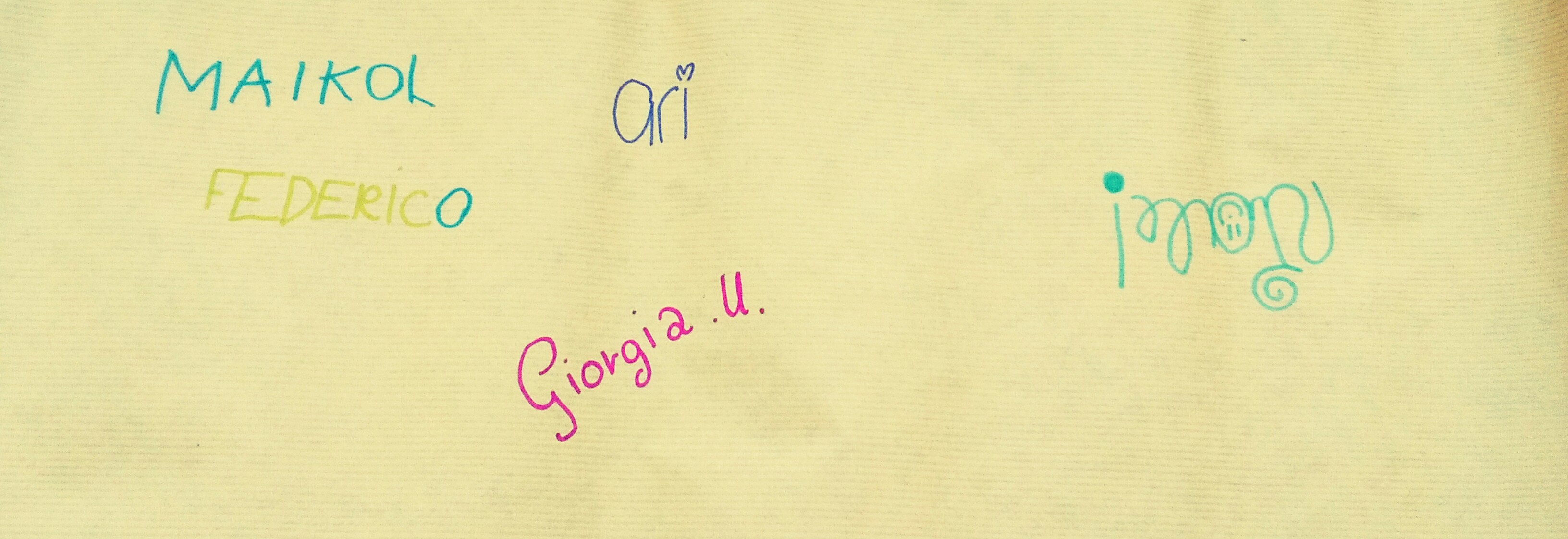 Giorgia aveva i capelli blu, Filippo era con uno strano skateboard meccanico, Alice aveva le unghie colorate e una camicia moderna, Elena aveva qualcosa ai denti, Andrea D. aveva gli occhiali, Nicola aveva uno strano dispositivo con cui giocava, mentre Alessandro si faceva strane foto di continuo.