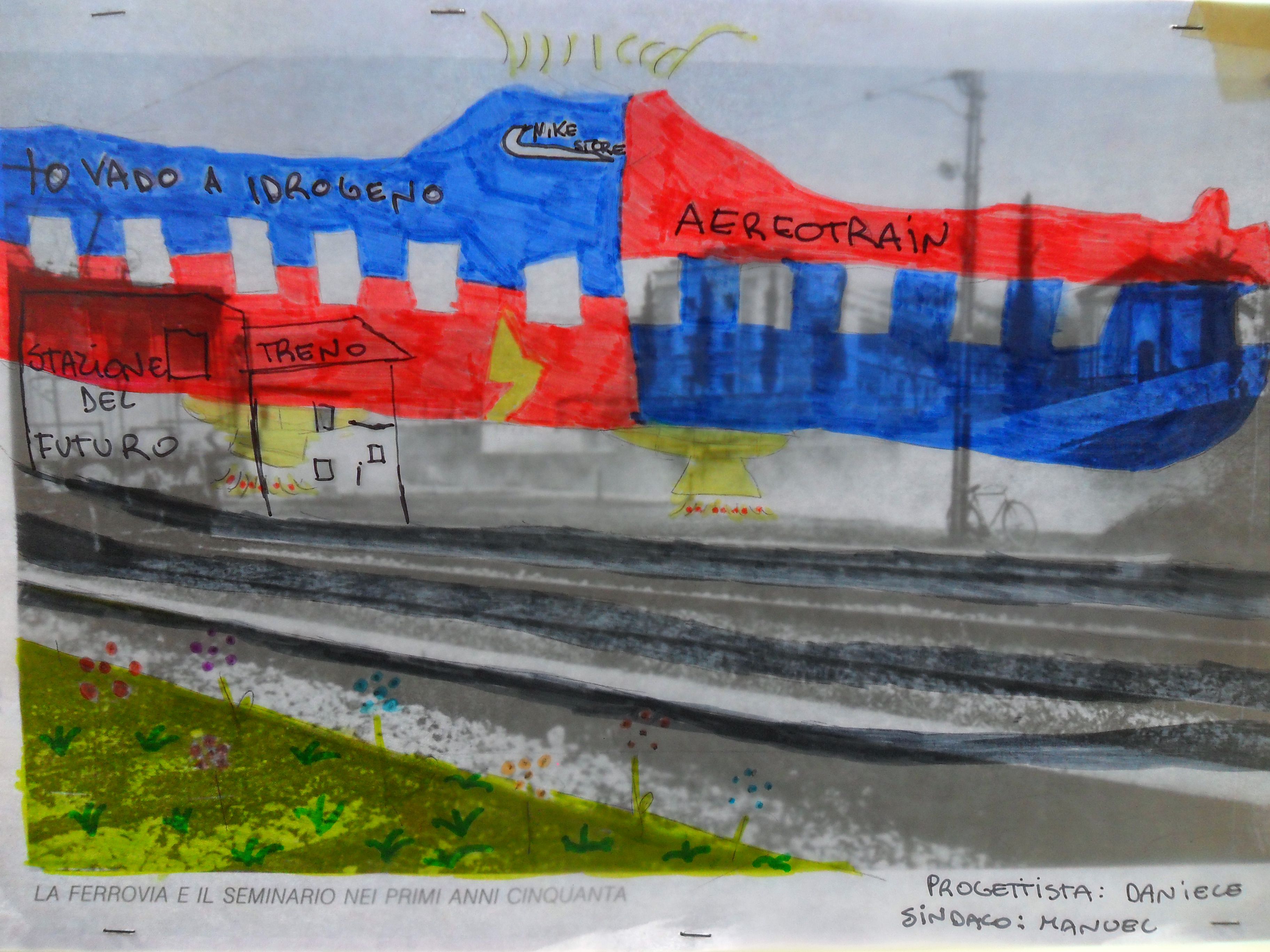 I ragazzi, giocando un po’ a fare gli architetti urbanisti e andando a valutare i lavori e le proposte altrui, hanno lavorato su vecchie fotografie e immagini più recenti del luogo. La carta da lucido come spazio di possibilità e immaginazione rispetto all’immagine reale sottostante, per far emergere i desideri e le visioni dei ragazzi rispetto agli spazi che abitano e di far calare nella dimensione pubblica della progettazione, che deve tenere in considerazione richieste, punti di vista, caratteristiche e vincoli territoriali complessi.